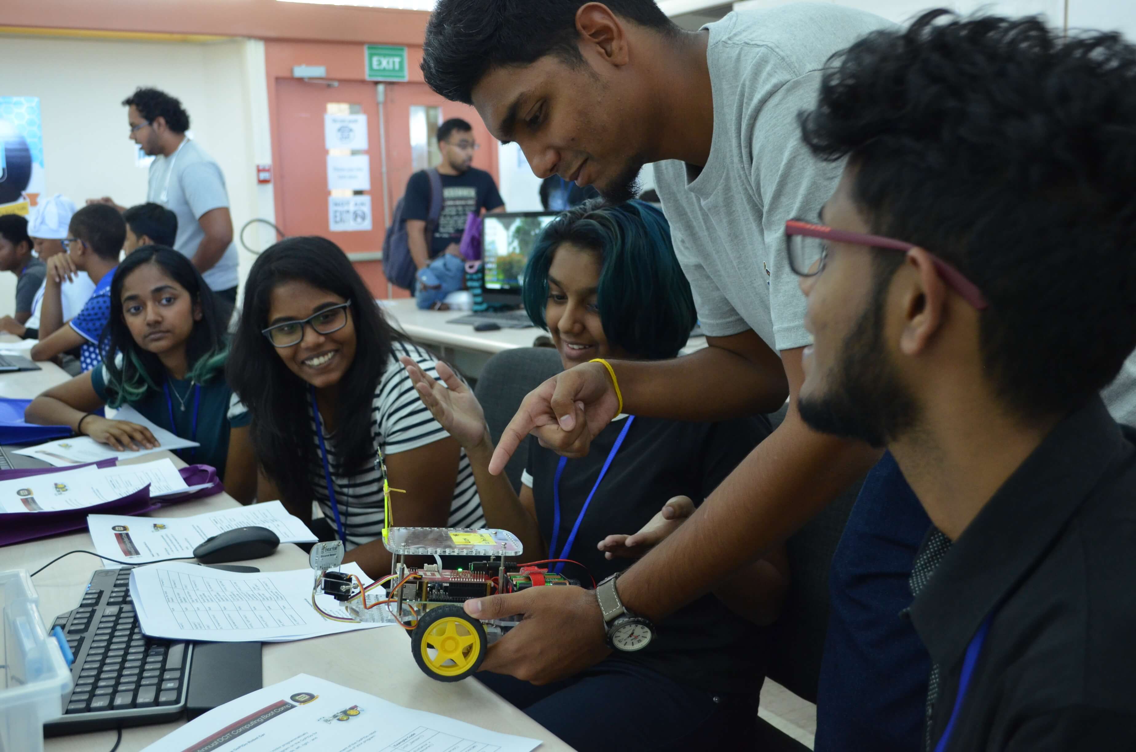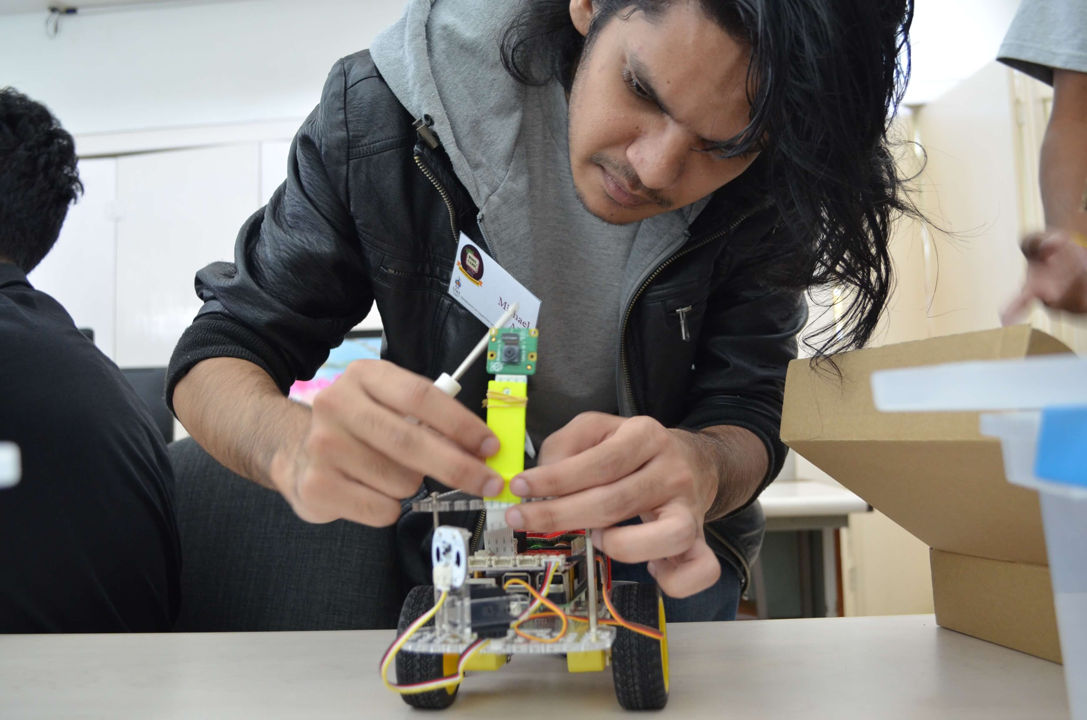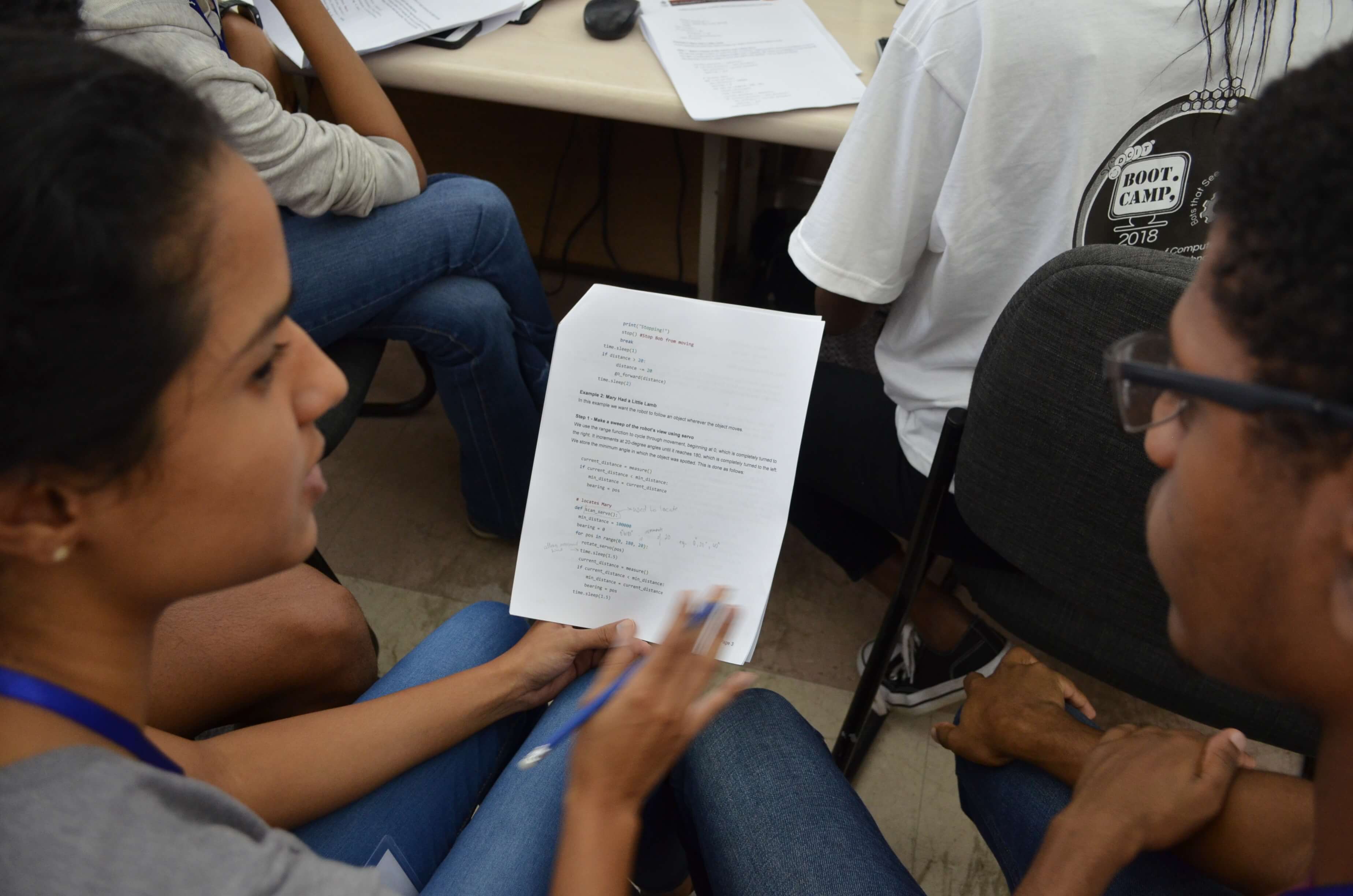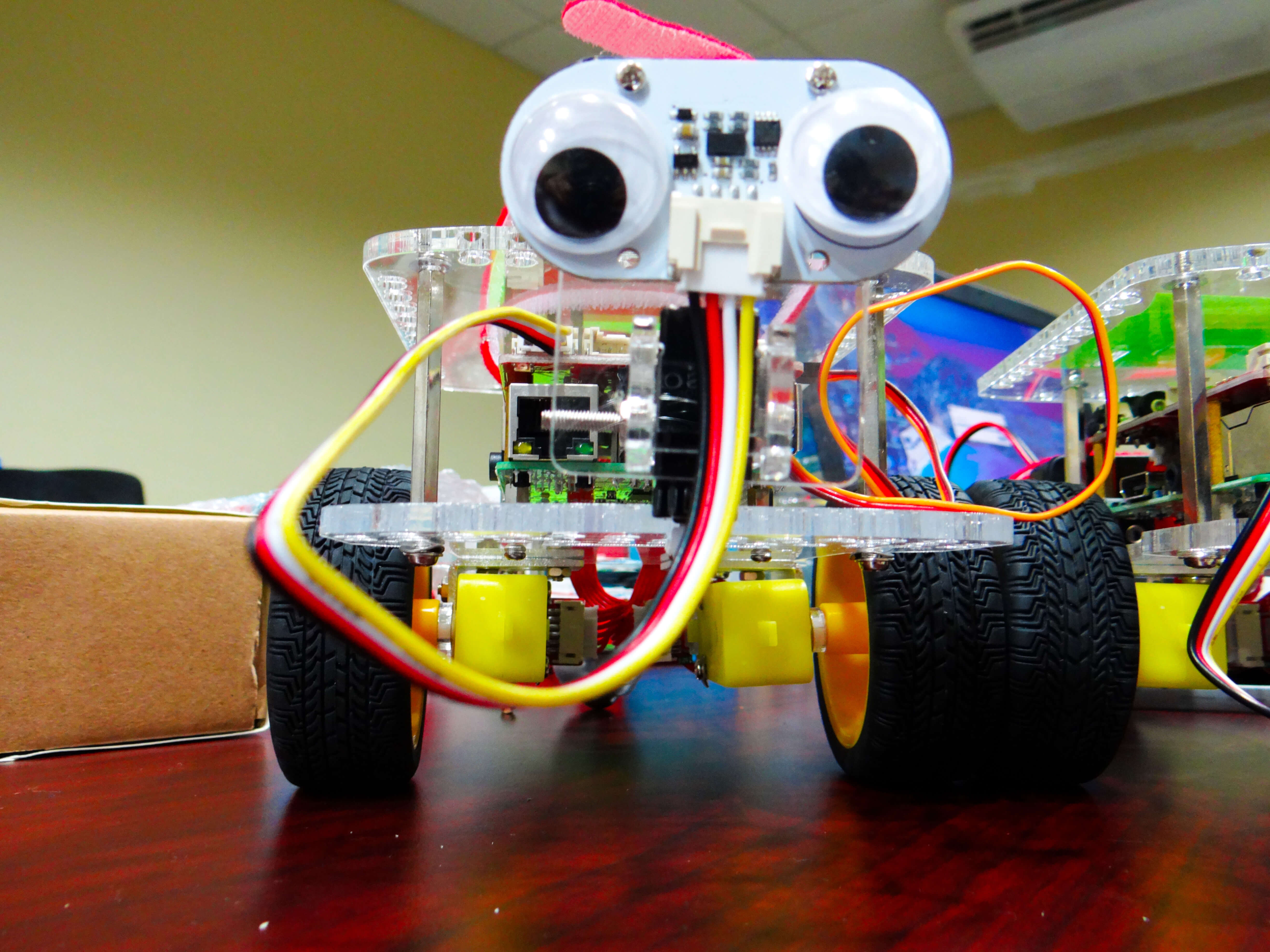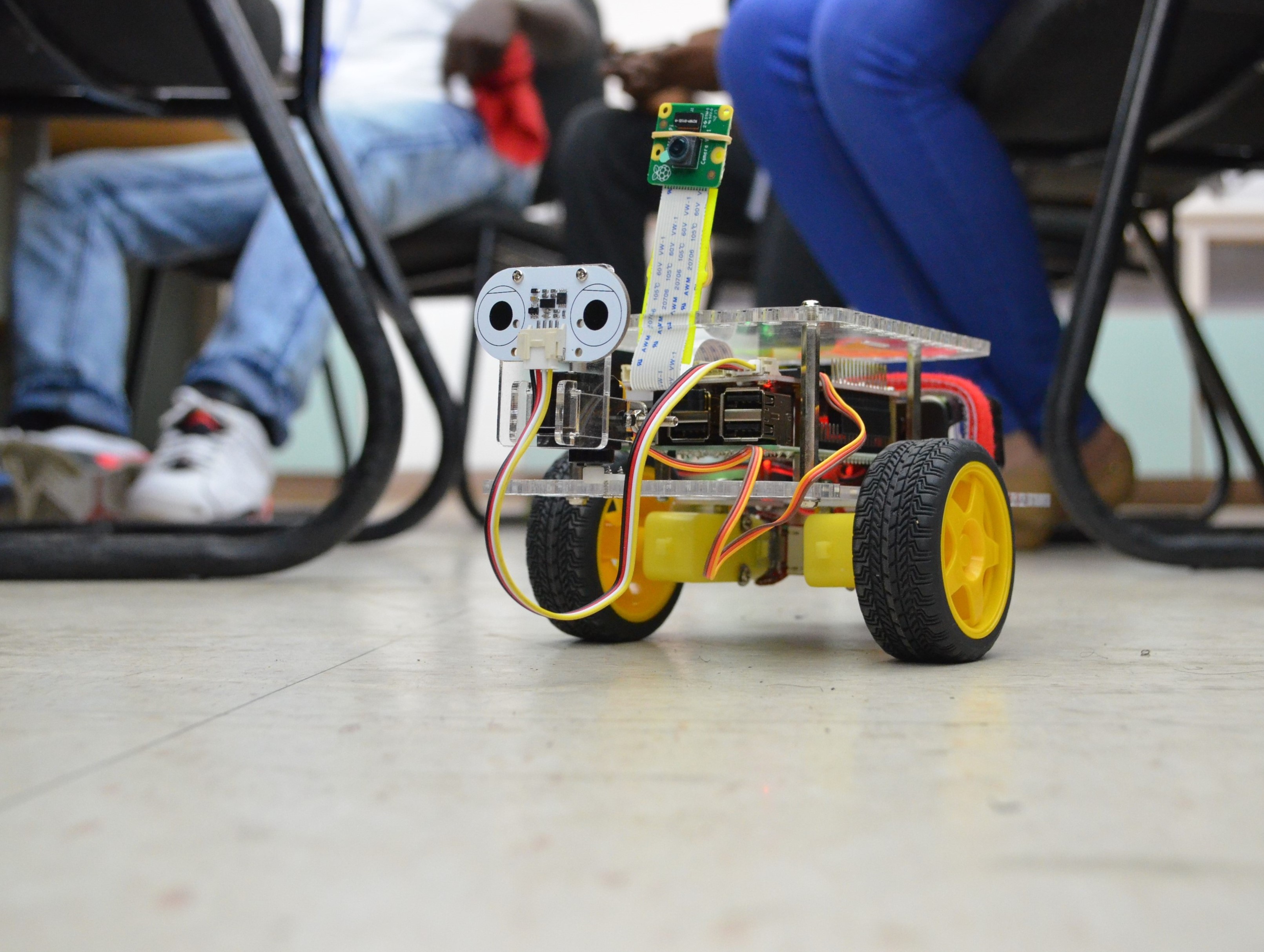 At the end of the boot camp, the students were able to use the camera, speaker and distance sensors to solve a maze and detect objects and got creative by making the robot speak, play music and dance.