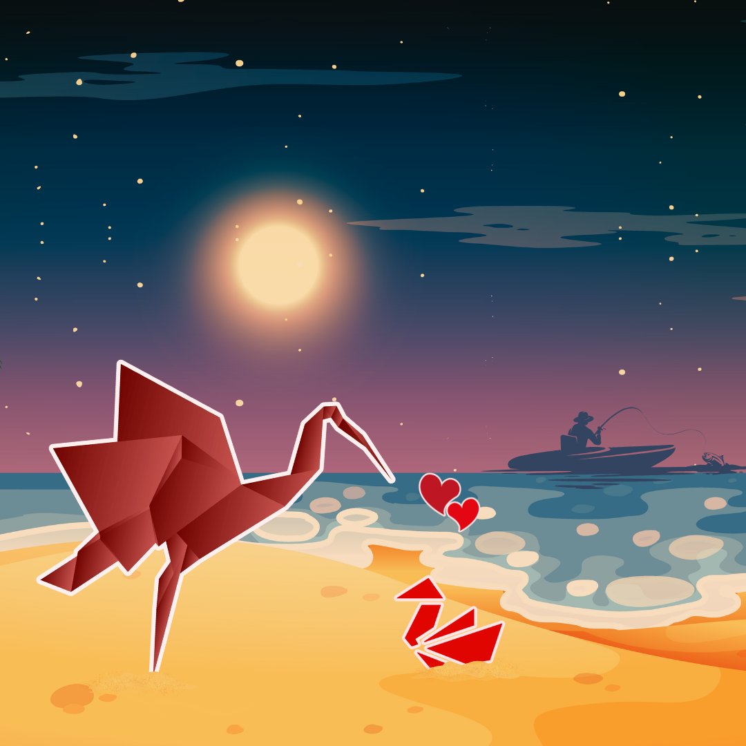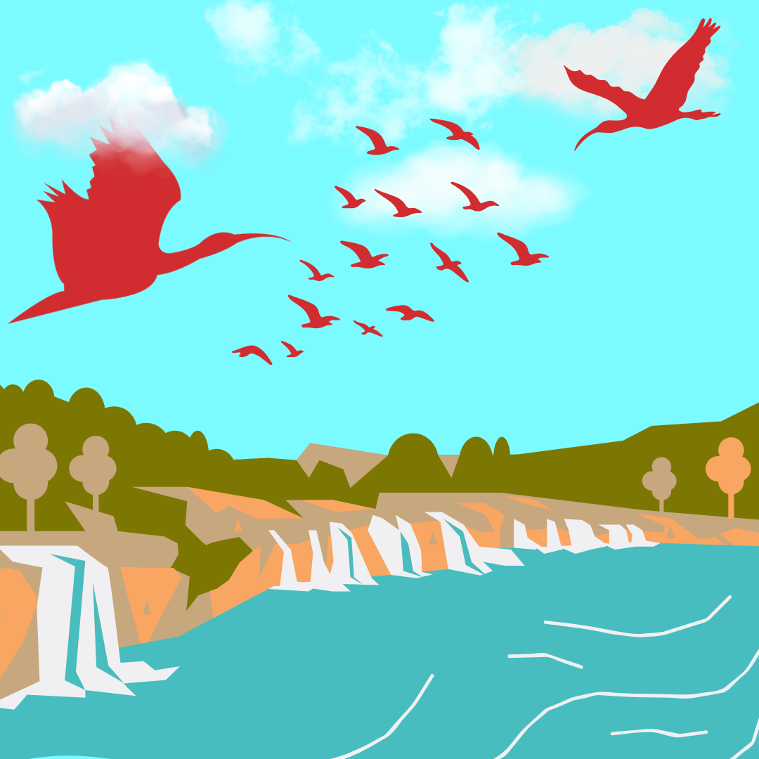 Scarlet Beach: seaside scene with the Scarlet bird taking a break